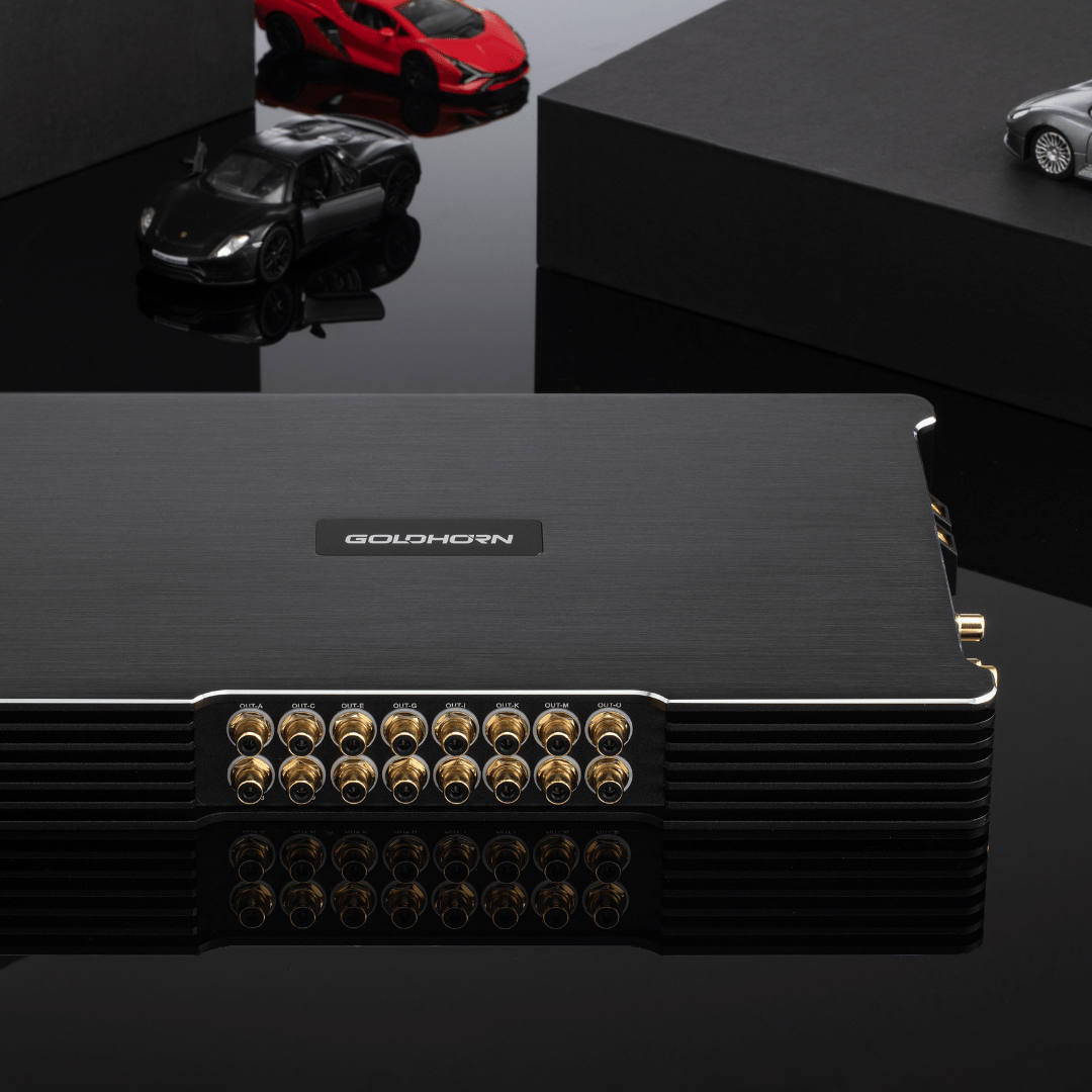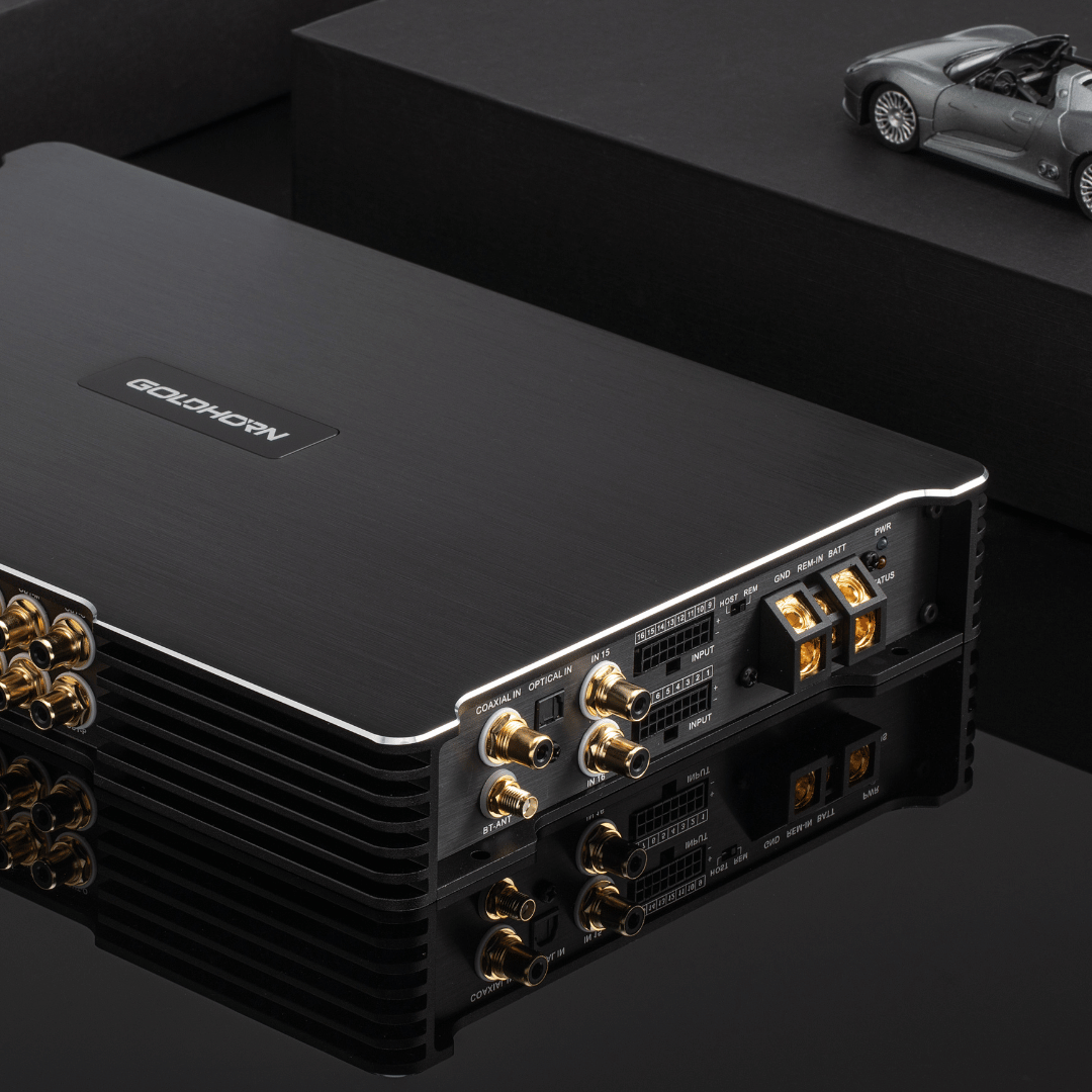 Le GOLDHORN DSPA 1216 Plus est un amplificateur DSP avancé conçu pour les installations audio automobiles haut de gamme. Avec 12 canaux amplifiés, 24 sorties DSP et 2 sorties BLT pontées jusqu’à 200W, ce système est conçu pour piloter un système HiFi multicanal complet. Grâce à des fonctions telles que le Dynamic Loudness Control, la technologie SKYATOM Surround et un égaliseur 31 bandes, le DSPA 1216 Plus offre une expérience d’écoute impressionnante dans tout type de véhicule, de Mercedes à Volvo.