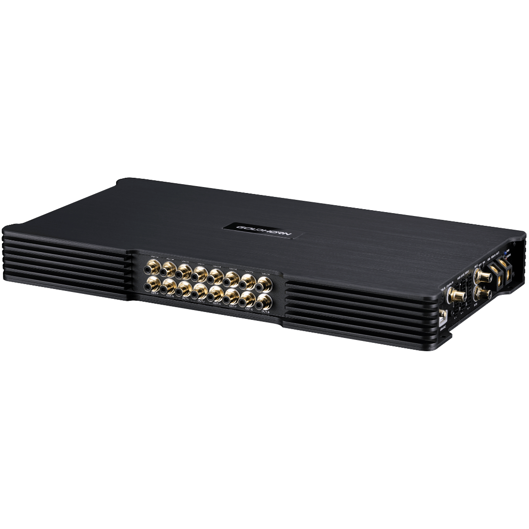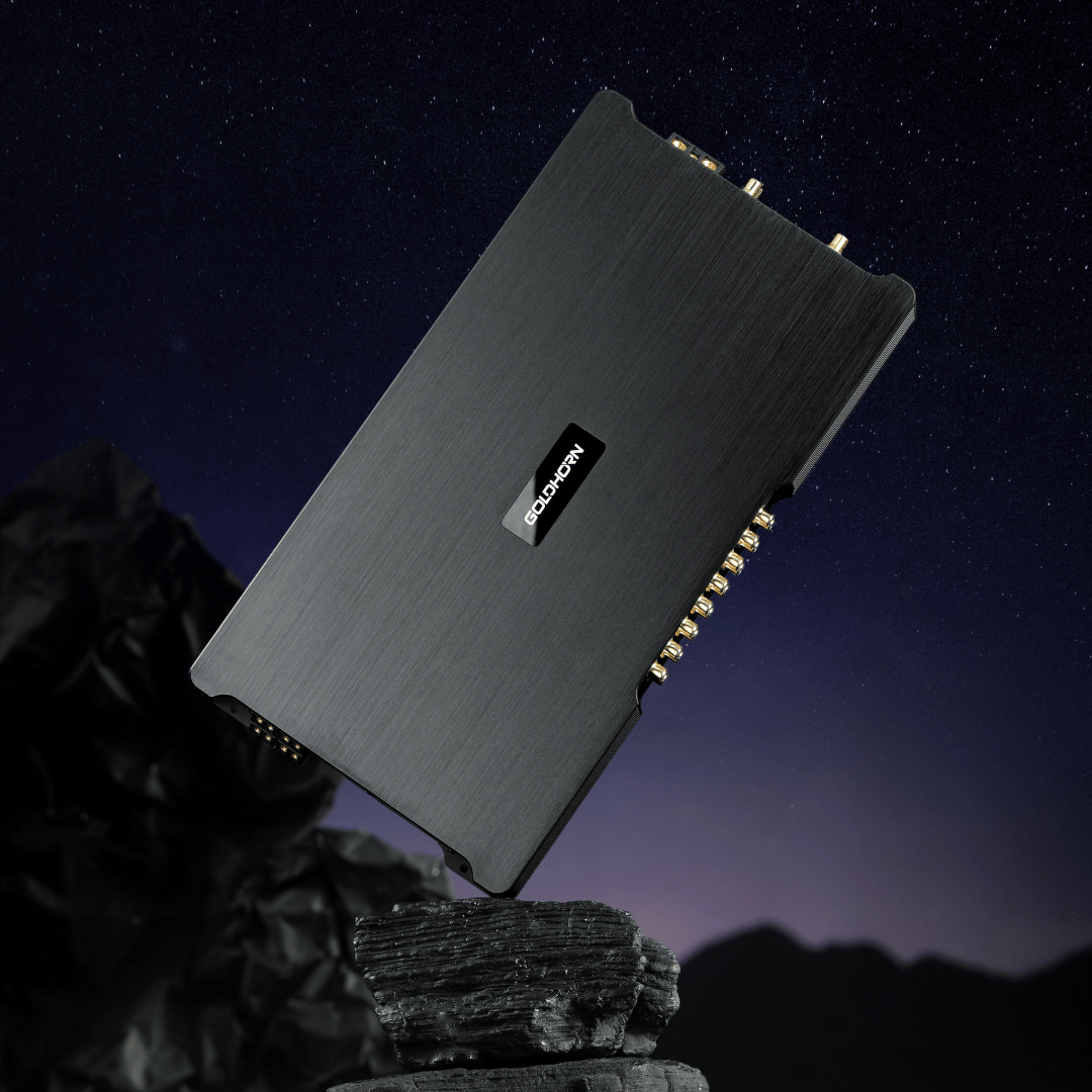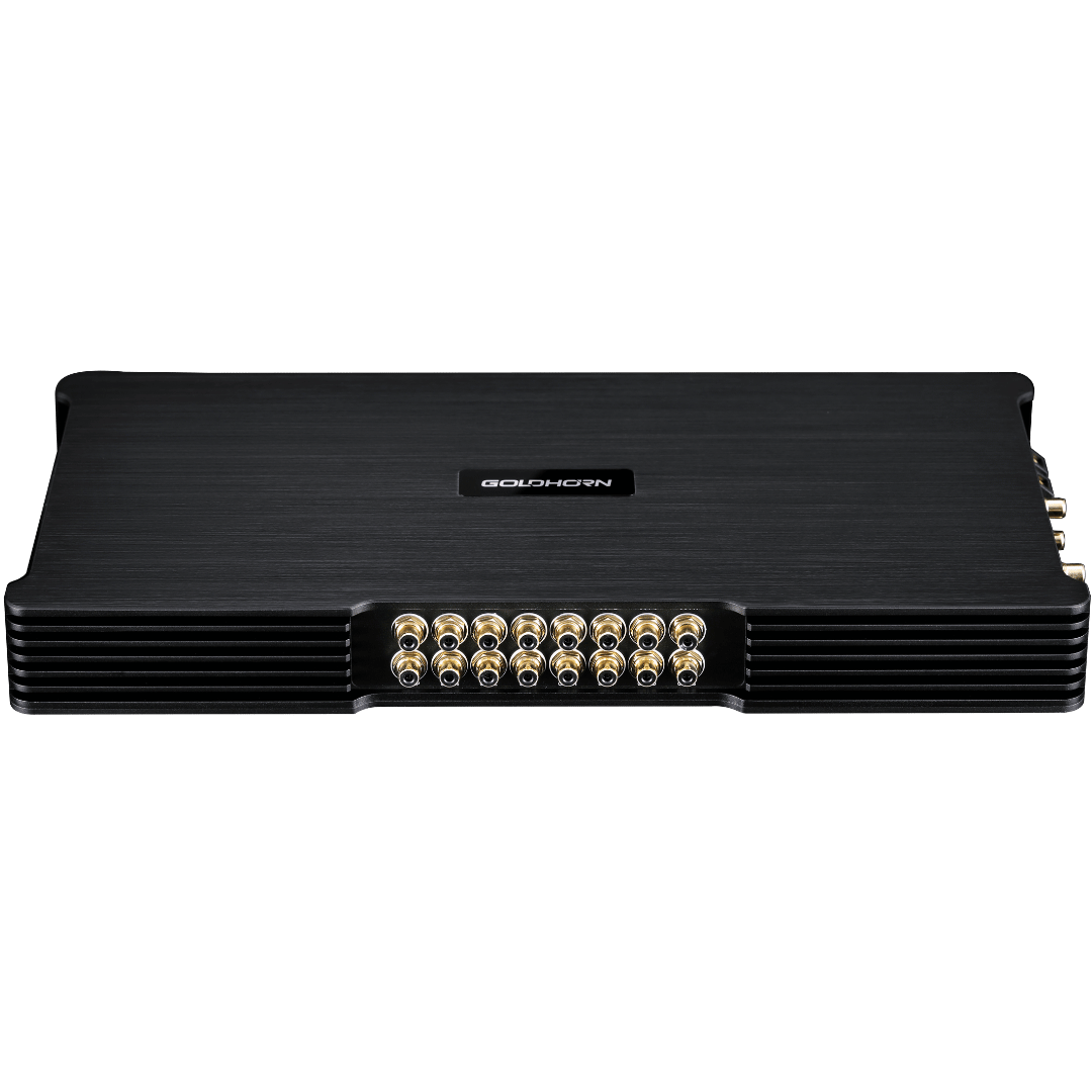 Le GOLDHORN DSPA 2416 Ultra est un Amplificateur DSP haut de gamme avec 36 sorties DSP, 24 canaux amplifiés jusqu’à 150 W, un mode ponté optionnel et une entrée OTG. Conçu pour les voitures de luxe et les véhicules électriques dotés de systèmes audio complexes.