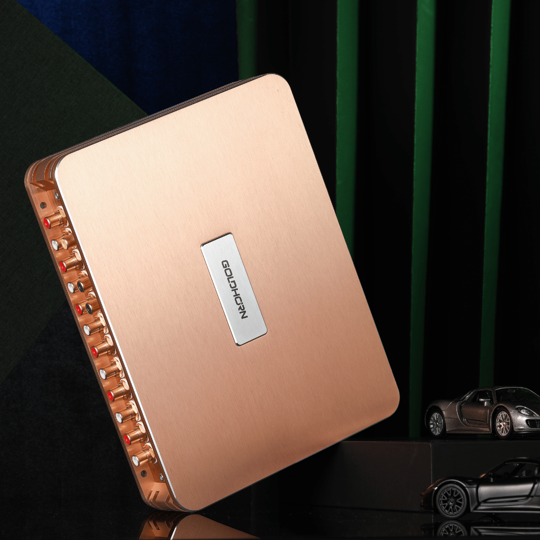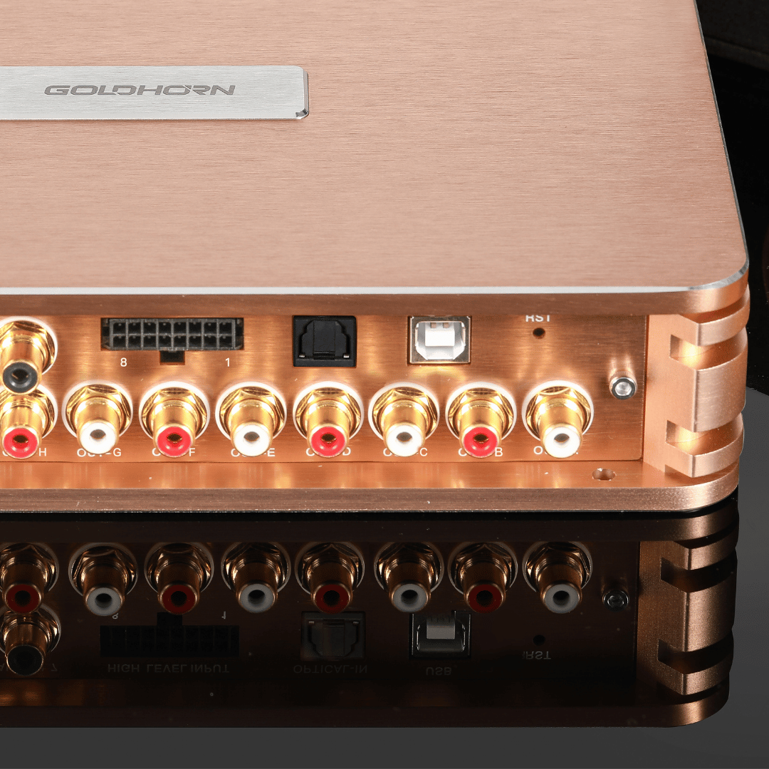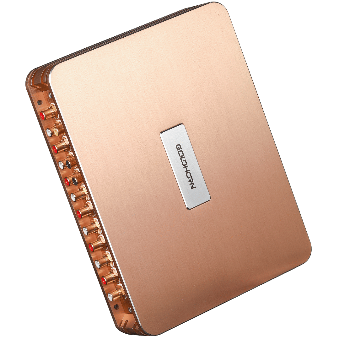 Le GOLDHORN P2 DSP Pro V2.0 est un lecteur multimédia numérique haut de gamme et un processeur DSP 12 canaux réunis dans un seul système. Équipé de six DAC ESS ES9038Q2M et du système audio propriétaire GHA1000, cet appareil délivre un son chaleureux, musical et d’une précision exceptionnelle. Les 12 sorties RCA permettent des configurations actives 3 voies à l’avant et à l’arrière, tandis que l’entrée optique assure la compatibilité avec les lecteurs CD haut de gamme. Grâce au lecteur multimédia intégré, vous pouvez écouter votre musique via Bluetooth®, Wi-Fi ou depuis un support SSD/HDD. Le tout est piloté par un DSP professionnel 31 bandes avec réglage de phase variable jusqu’à 360° par canal.